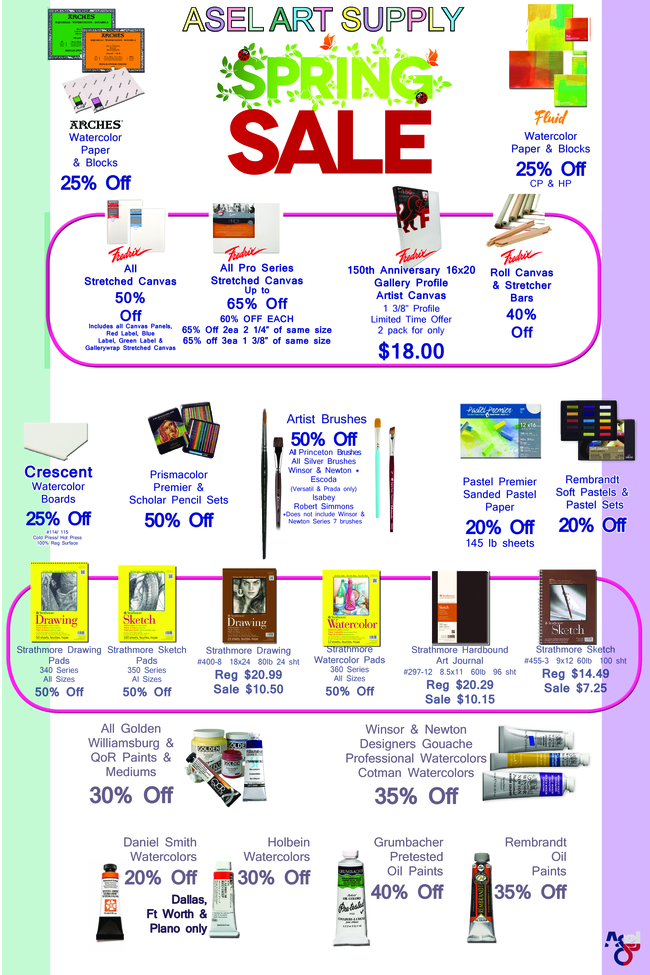 Enjoy big savings on a colorful variety of products at Asel Art Supply’s Spring Sale!